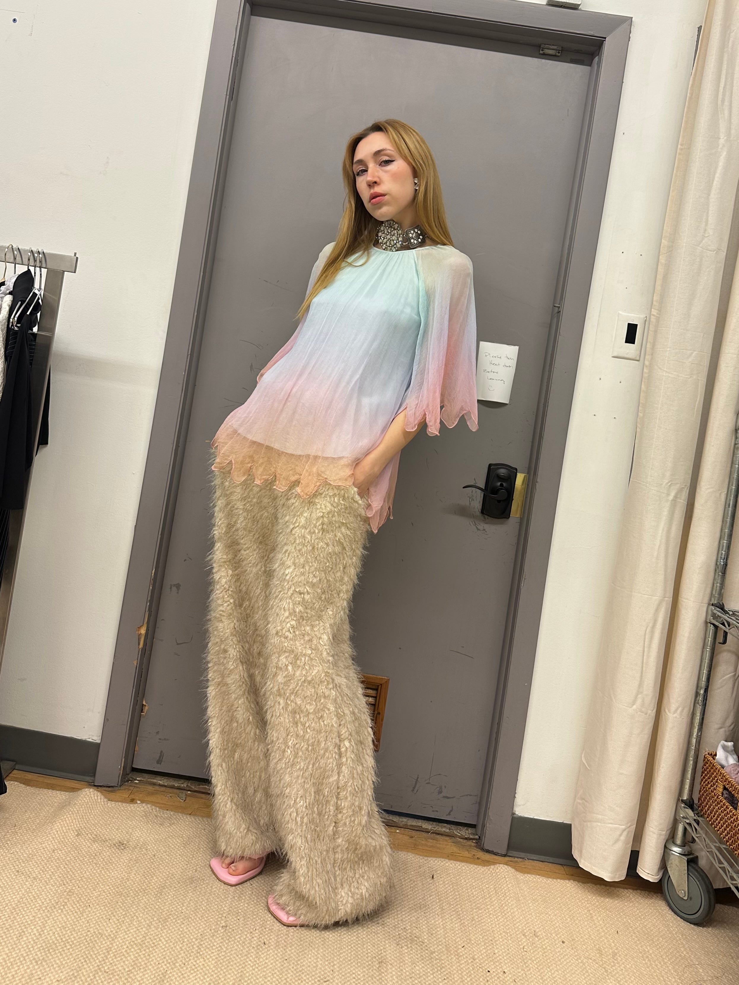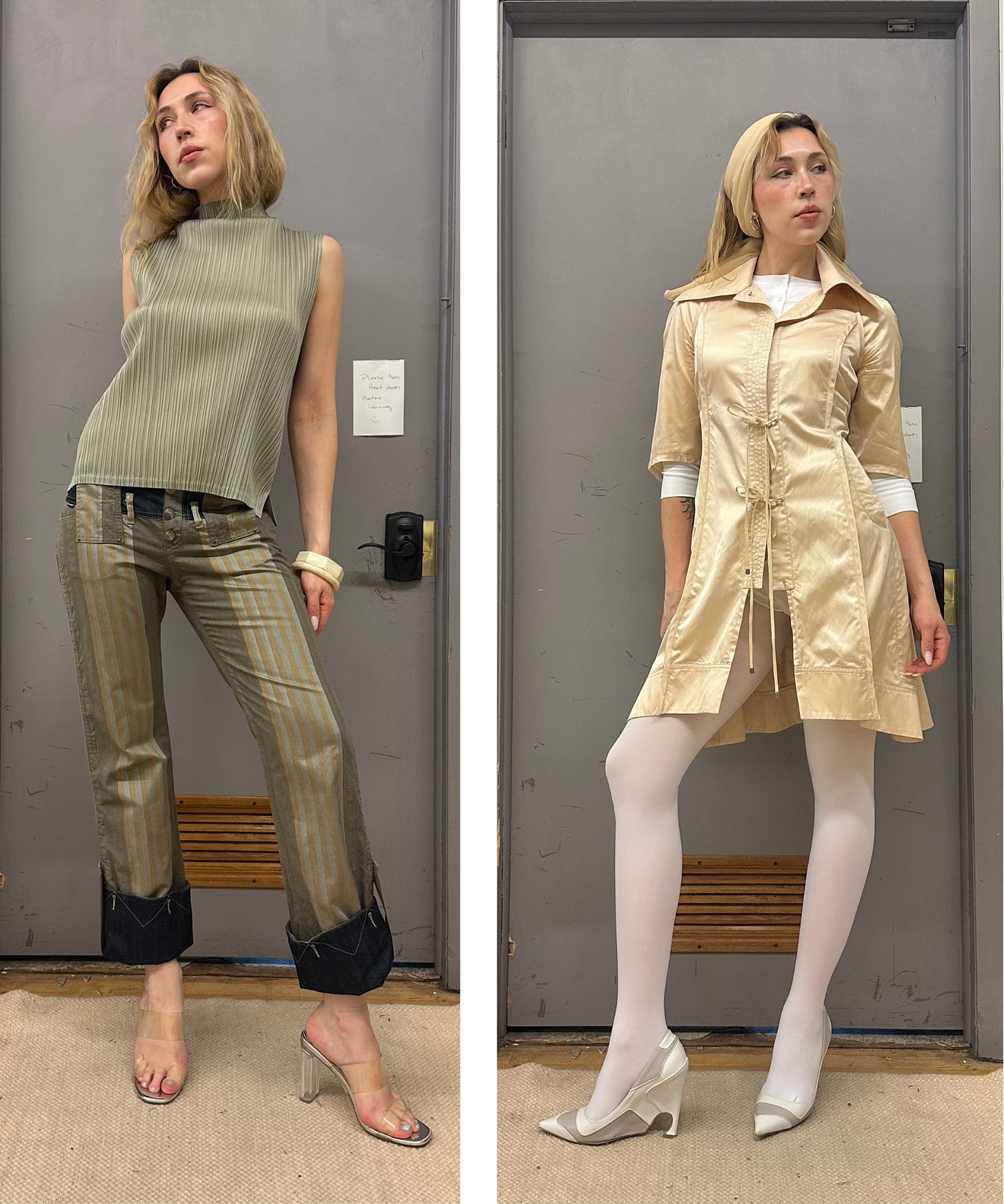 To wrap it up: three pieces coming to my July drop. A classic Issey Miyake Pleats Please top in this gorgeous sage green color, these insane low rise capri pants by Roberto Cavalli, and a sweet satin jacket from Costume National.